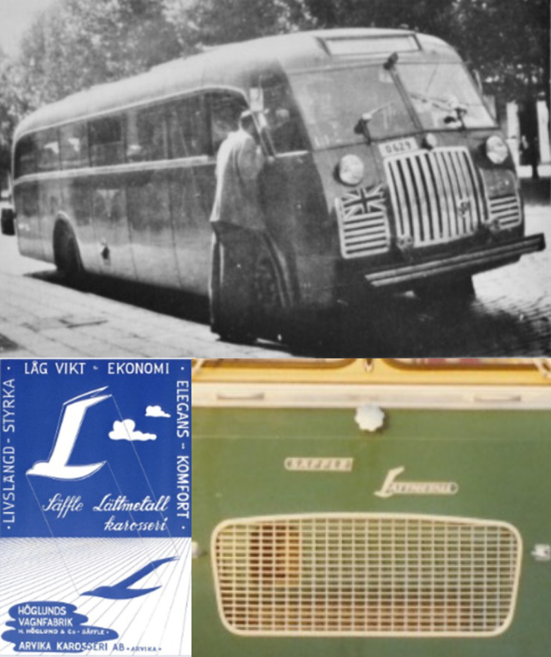 Efter kriget kom busstillverkningen i gång igen, trafiken ökade och därmed också trafikolyckorna. Myndigheterna konstaterade då att skadorna på passagerare, vid bussolyckor, kunde blir mycket svåra på grund av splittrat trä från karosstommen. Den gängse konstruktionen för en kaross var en stomme av trä som kläddes med plåt utvändigt och med träskivor invändigt. Helge Höglund fann lösningen på detta genom att från det schweiziska företaget Aluminium Industrie A.G. köpa kunskap och material för att tillverka en karosstomme helt av aluminium, eller lättmetall, som den speciella legeringen kallades. Höglund byggde två bussar på prov och en av dessa gav sig ut på en försäljningstur till Sveriges olika bussbolag.