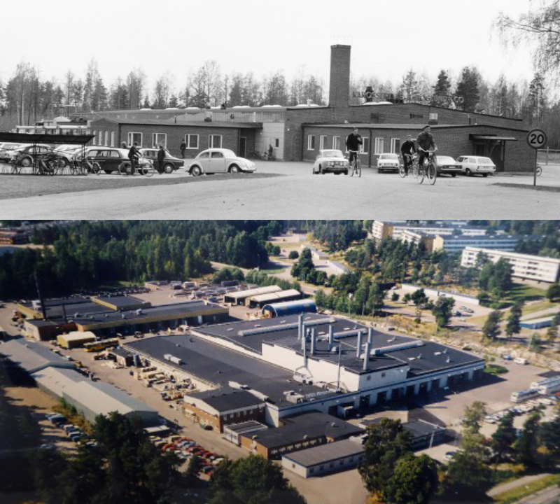 Fabriken: Den nya fabriken i Norelund 1965 blev början på en kraftig expansion. Flygbilden är tagen några år innan tillverkningen flyttades till Polen