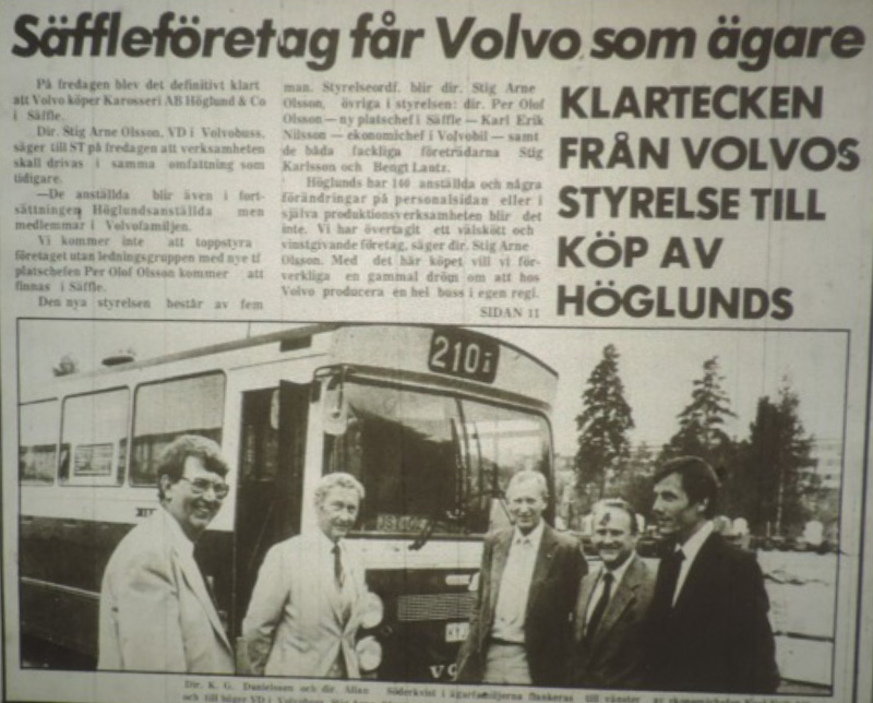 Säffle-Tidningen. 12 september 1981 i samband med Volvos köp av Höglunds karosseri.