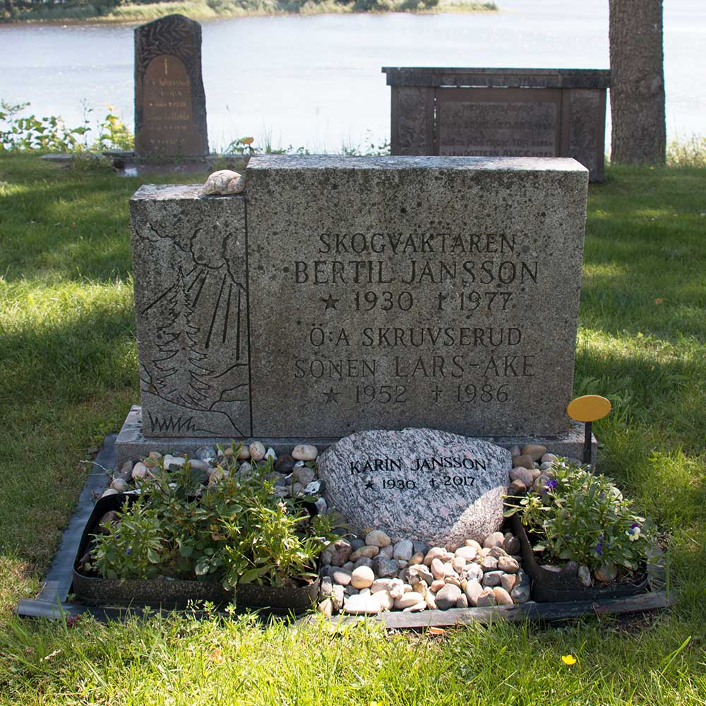 Åke Bertil Jansson föddes 1930 i Östra Skruvserud. Föräldrar var Jani Artur Jansson, född 1899 i Östra Skruvserud och Signe Maria Kilberg, född 1912 i Storängen Ed (Gravnummer: 10 02 93).